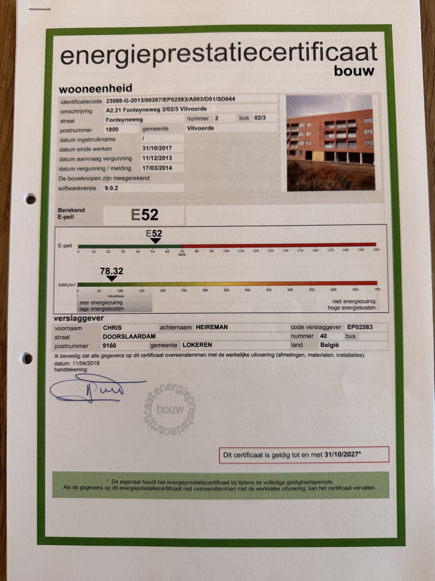 - Date EPC certificate