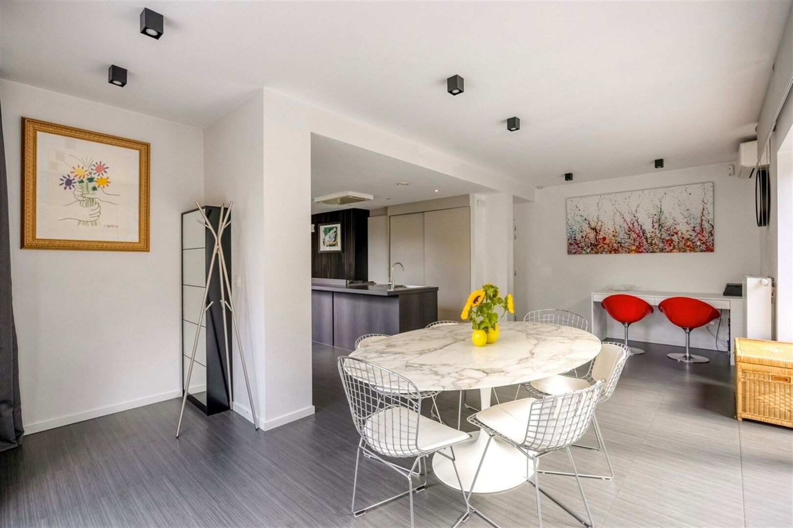 The ground floor offers an open and airy living space with a modern look, a cozy sitting area and a playful layout with design accents. Large windows provide plenty of light and a nice view of the garden. The living room flows seamlessly into the spacious dining area and fully equipped kitchen, ideal for cozy moments with family and friends.