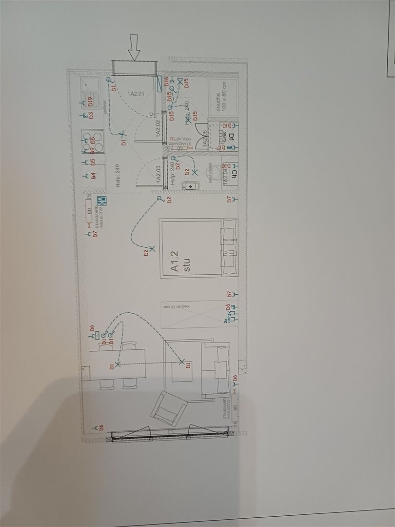 On the 1st floor of a recent building you will find this large studio apartment with full kitchen (oven, fridge, 4-burner hob, extractor fan, sink), shower room with shower, washbasin and laundry area, separate WC and spacious living area of +/- 27 m².