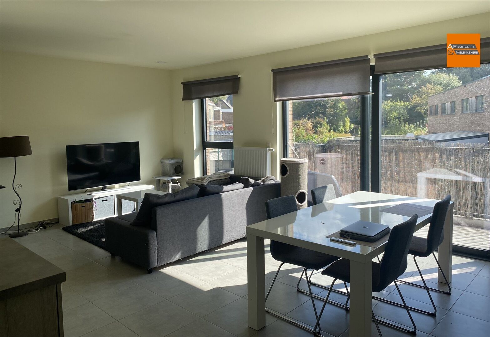 Le hall d’entrée mène à un agréable séjour très lumineux avec de grandes baies vitrées donnant accès à une terrasse avec vue sur la verdure. Dans ce séjour se trouve une cuisine américaine entièrement équipée avec un débarras attenant.