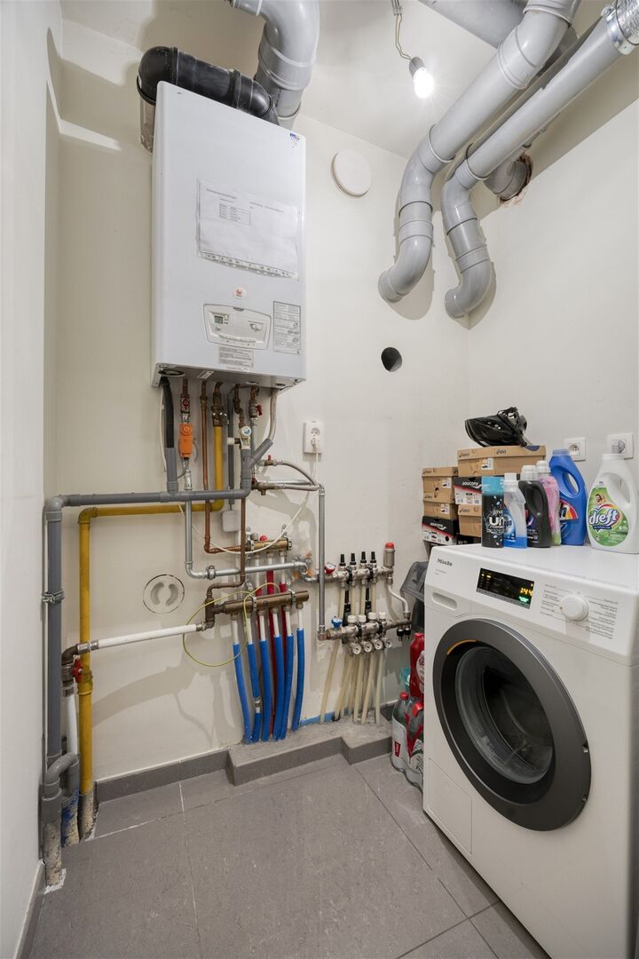 L'appartement dispose d'un chauffage par le sol et d'une chaudière à condensation au gaz économe en énergie, ce qui lui vaut un label EPC B. Au sous-sol, l'appartement dispose également d'une pièce de rangement privée d'environ 6 m², idéale pour un stockage supplémentaire.