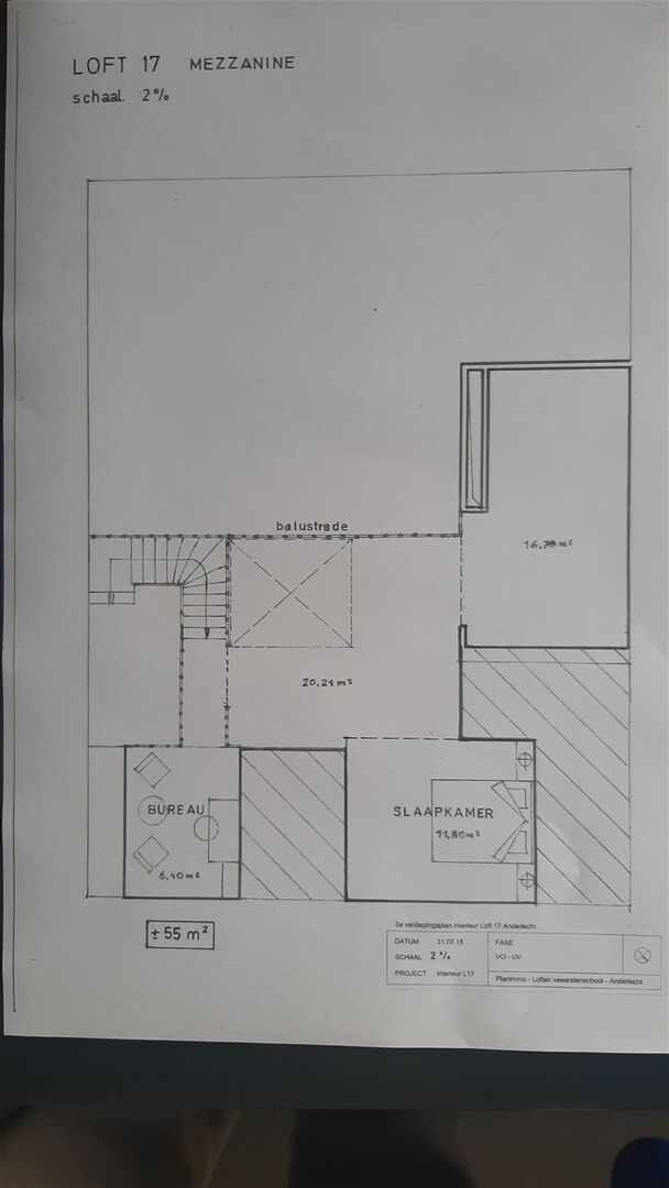 Disposition: hall d'entrée ouvert, toilettes séparées, débarras/ buanderie, cuisine américaine équipée ouverte sur le living de +/-75m², salle de bain spacieuse avec baignoire, douche et double vasques et WC, un coin salon tv ou espace pour une chambre de +/- 17 m², une chambre de +/- 16m² ou espace bureau, magnifique mezzanine de 55 m² repartie en un espace bureau de +/- 6 m² , un espace central de +/- 20m², un espace pour une chambre de +/- 12m², et un rangement de +/- 16 m². ( voir photos des plans )