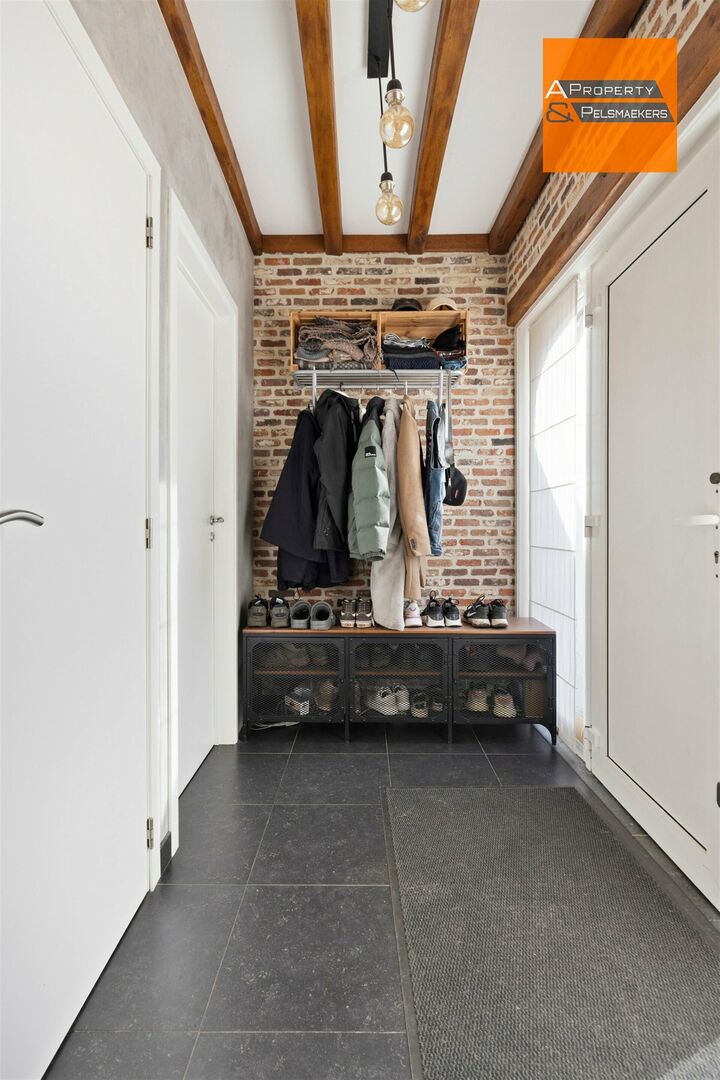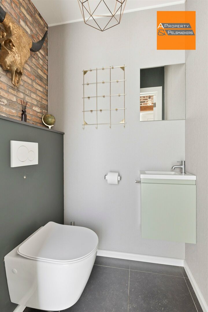 La maison, d'une surface habitable de 180 m² (selon EPC), vous accueille par un hall d'entrée spacieux avec des toilettes pour invités et un débarras/buanderie pratique.
