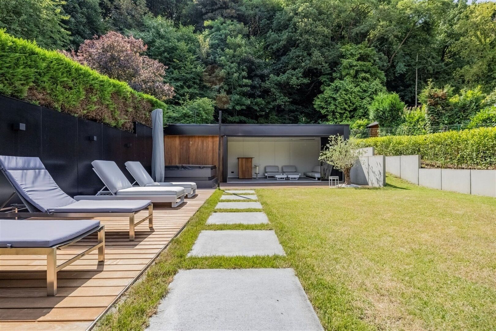 A l'extérieur, une oasis de calme vous attend avec une vue sur la forêt. Le jardin est magnifiquement aménagé et comprend un luxueux pool house et une terrasse spacieuse, idéale pour se détendre ou accueillir des invités les jours d'été. En outre, la propriété a un label PEB B très favorable, assurant un environnement de vie économe en énergie et confortable.