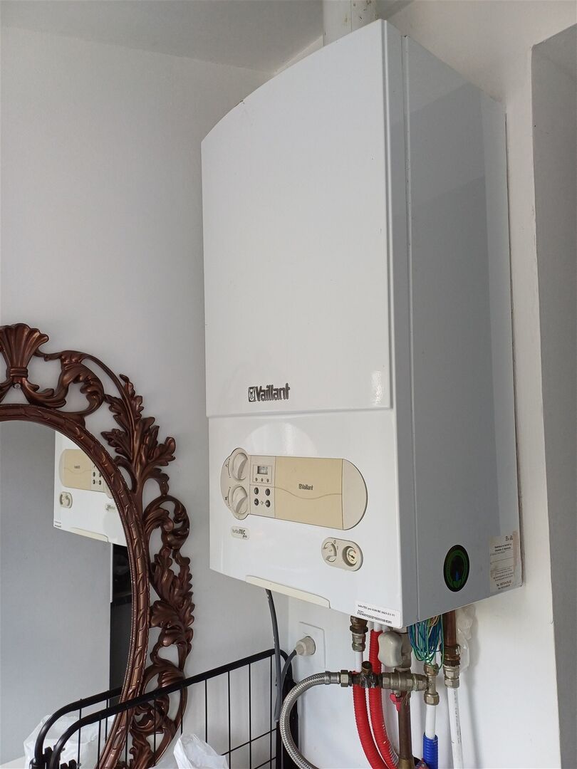 Les chassis sont en PVC à double vitrage et la chaudière au gaz est à condensation. Le mur arrière est partiellement isolé par l'extérieur.