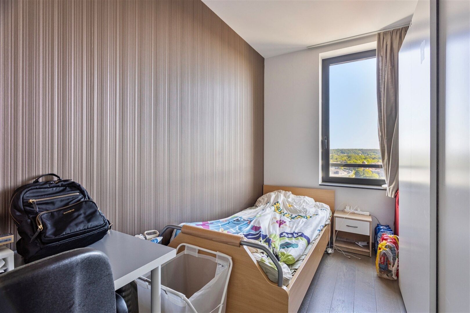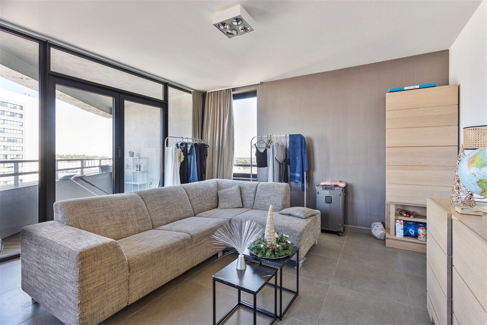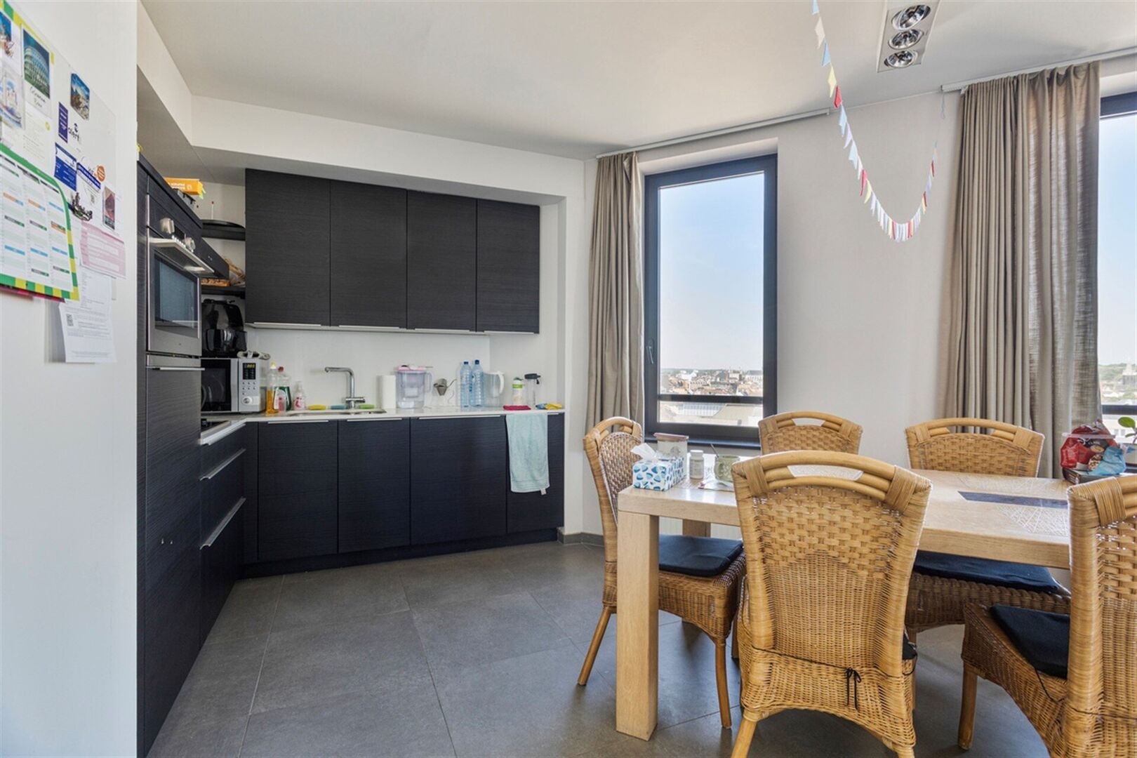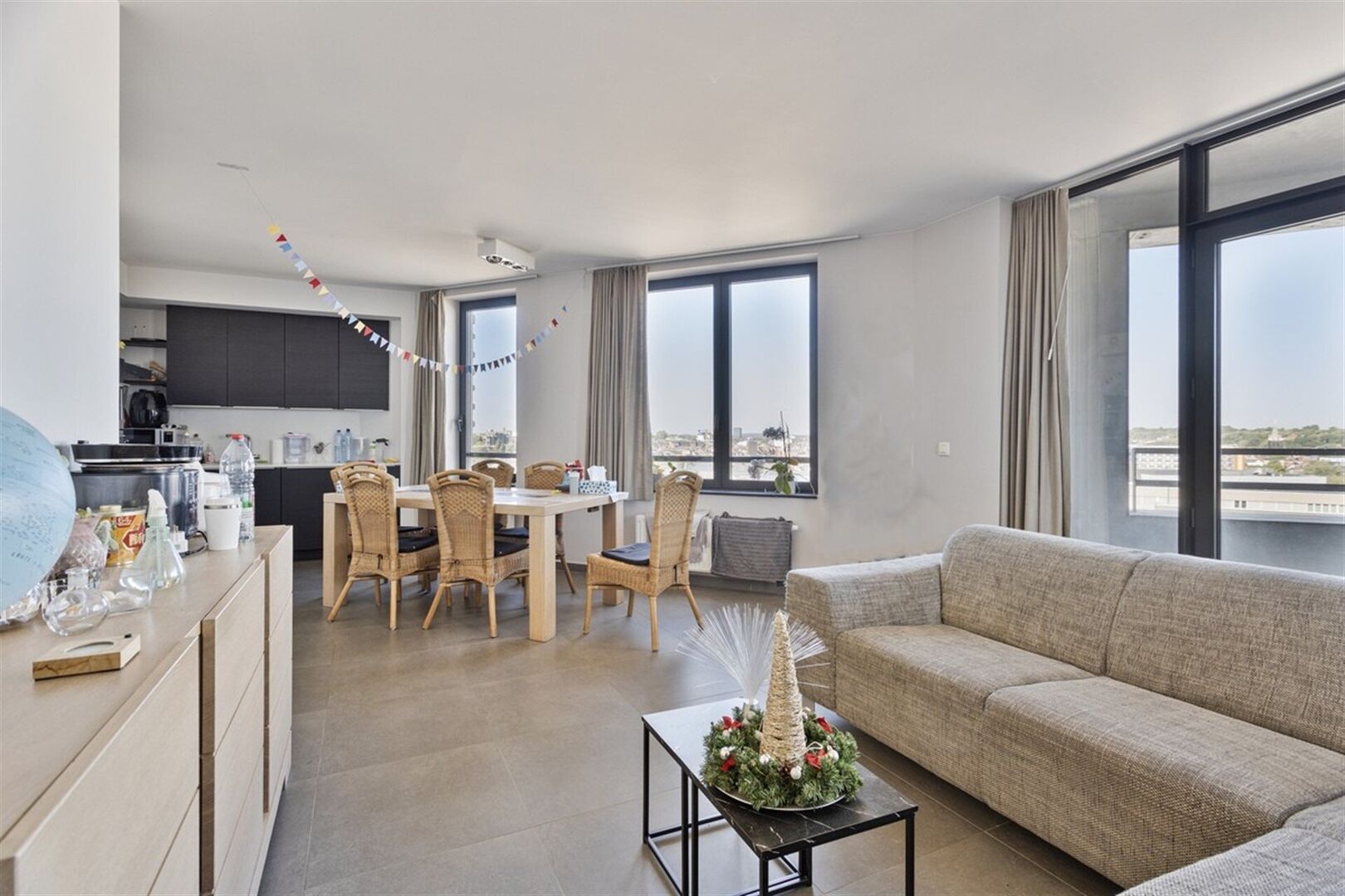 De lichte en ruime woonkamer is perfect voor ontspanning, met grote ramen die zorgen voor een overvloed aan natuurlijk licht en toegang geven tot een gezellig balkon. Hier kunt u genieten van een prachtig uitzicht over de stad, ideaal voor een kopje koffie in de ochtend of een glas wijn in de avond.