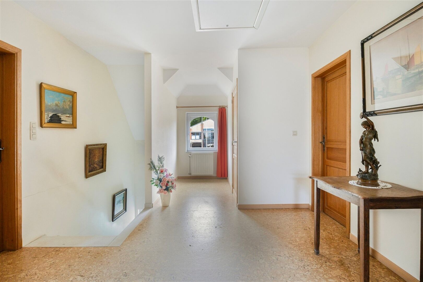 Op de eerste verdieping leidt de nachthal naar vier ruime slaapkamers (18m², 15m², 14m²,14m²), een apart toilet en een comfortabele badkamer met ligbad en dubbele wastafel. Extra bergruimte vindt u op de grote zolder.