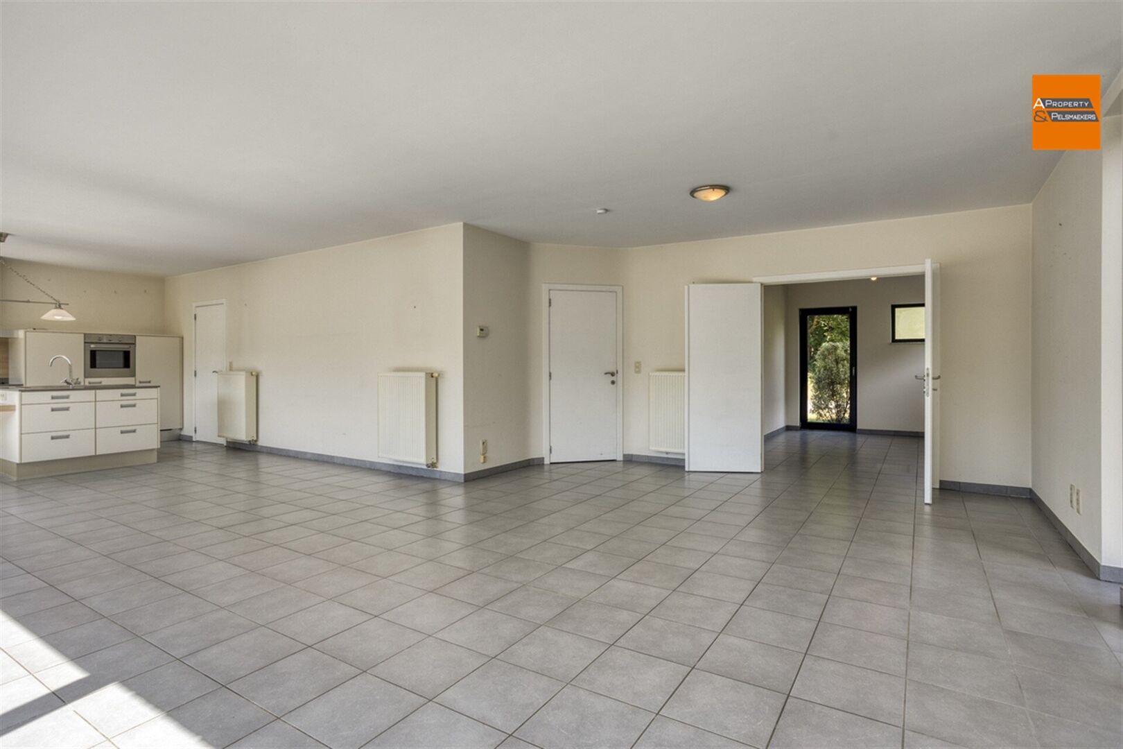 De lichtrijke woonkamer met grote raampartijen sluit naadloos aan op de open, volledig uitgeruste keuken dé plek voor gezellige momenten met familie en vrienden.