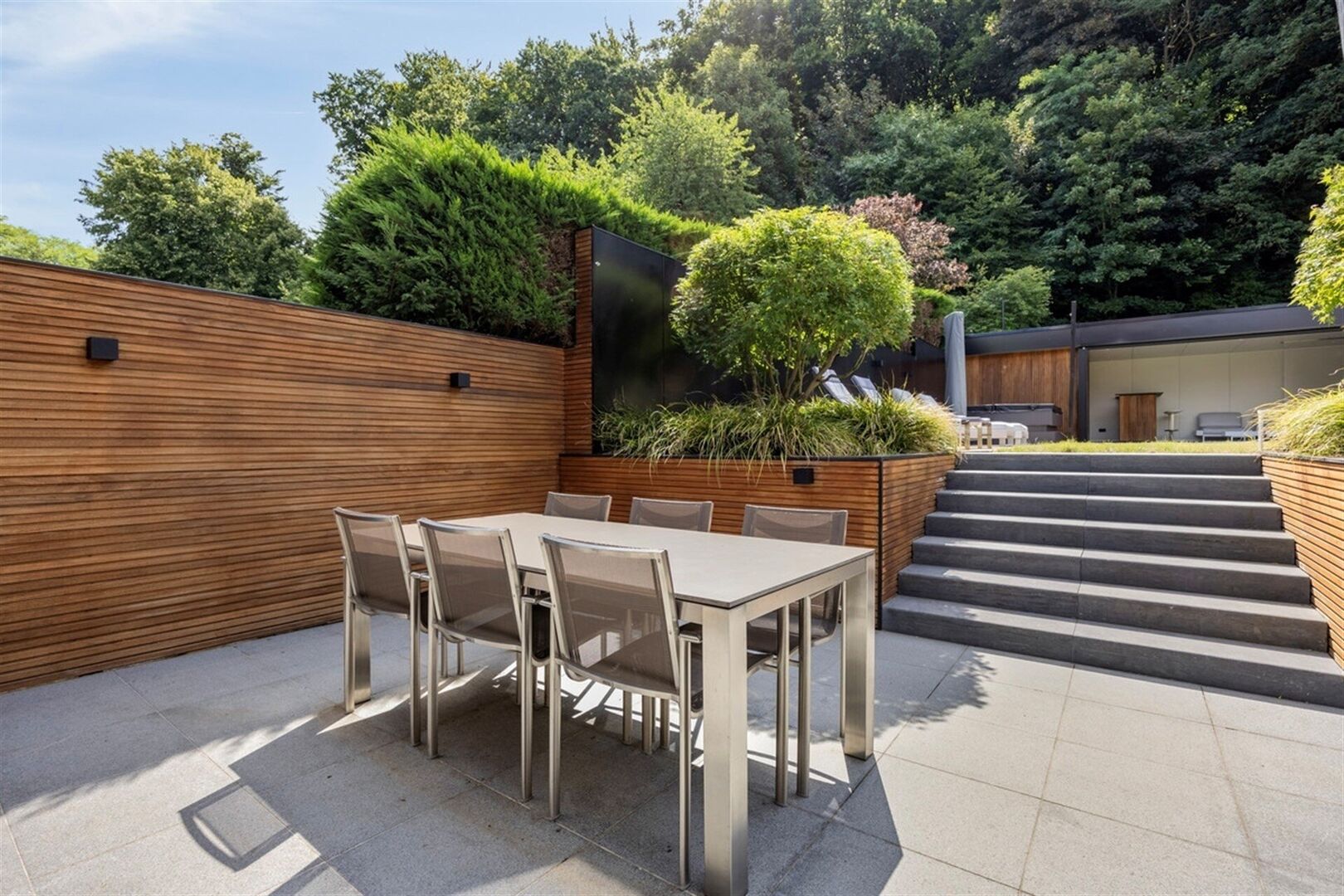 Buiten wacht een oase van rust met een prachtig zicht op het achterliggende bos. De tuin is fraai aangelegd en beschikt over een luxueus poolhouse en een ruim terras, ideaal om te ontspannen of gasten te ontvangen op zomerse dagen. Bovendien heeft de woning een gunstig EPC-label B, wat zorgt voor een energiezuinig en comfortabel woonklimaat.