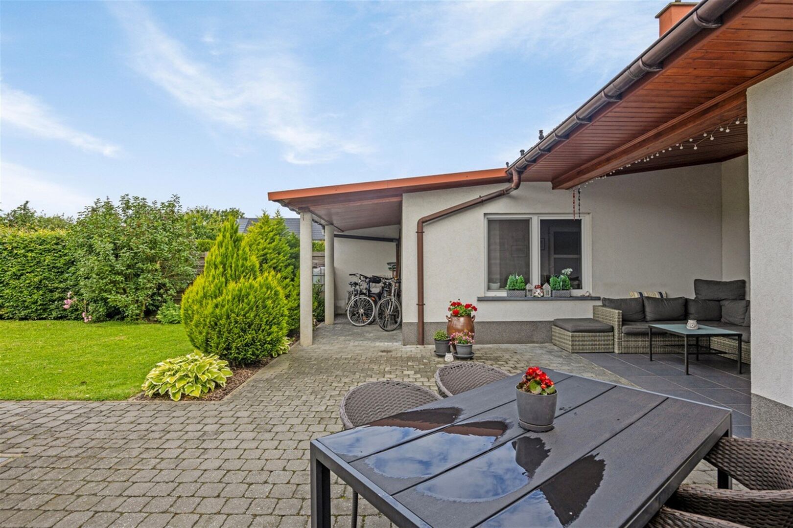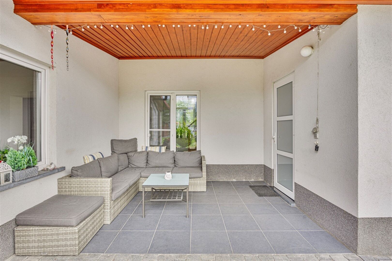 Achteraan de woning geniet u van een ruim terras en een sfeervol tuintje, compleet met een overdekte zithoek, een kleine serre en een zitschommel. De perfecte plek om te ontspannen of om gezellige barbecue-avonden met familie en vrienden te organiseren.