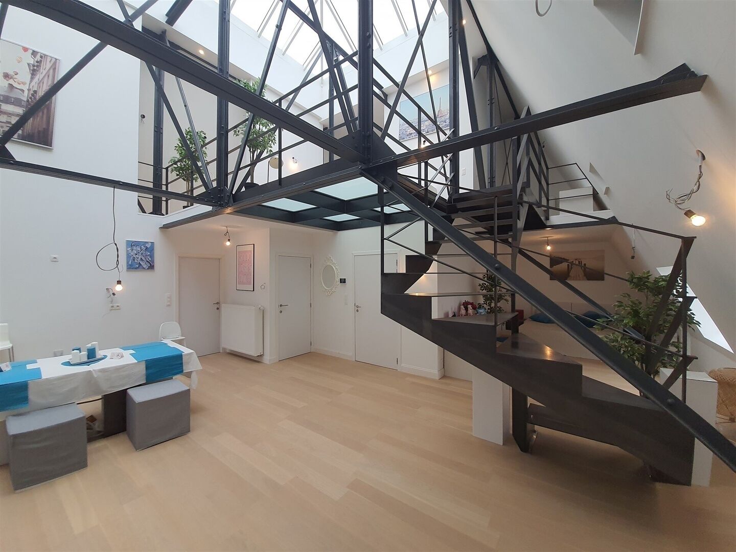 Gelegen op de 3de verdieping onder het dak, biedt dit appartement +/- 194 m² en baadt letterlijk in het licht dankzij de talrijke ramen en de indrukwekkende dakkoepel.