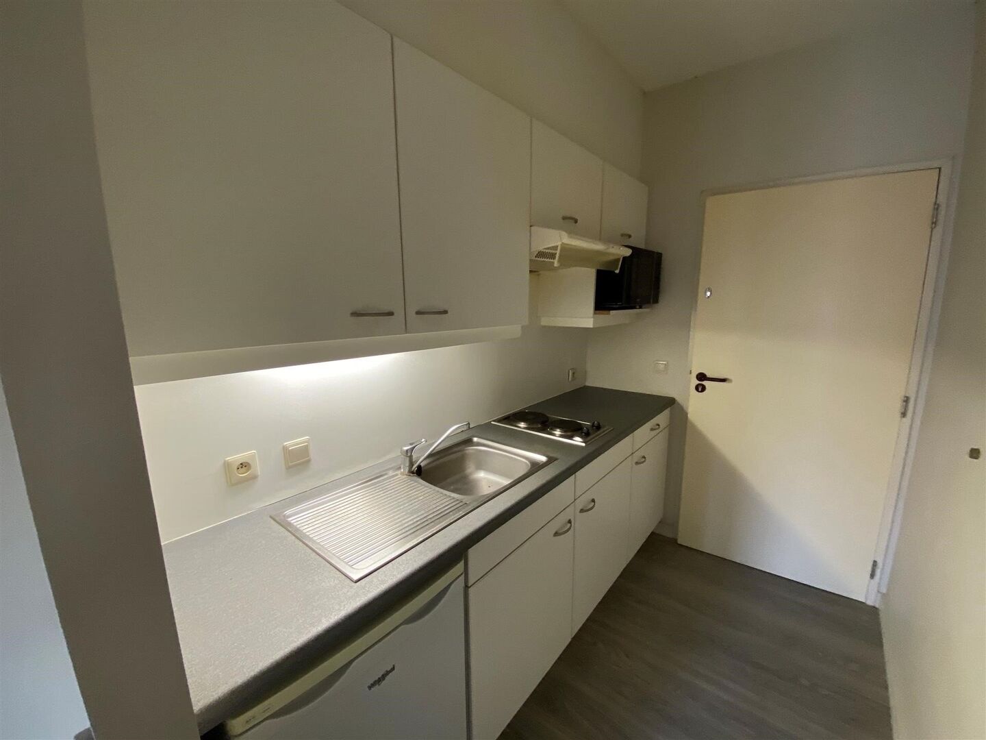 De studio wordt gemeubeld verkocht met 2 stoelen, tafeltje, bureau, ladenblok, kast, bed, gordijnen en kookgerief.