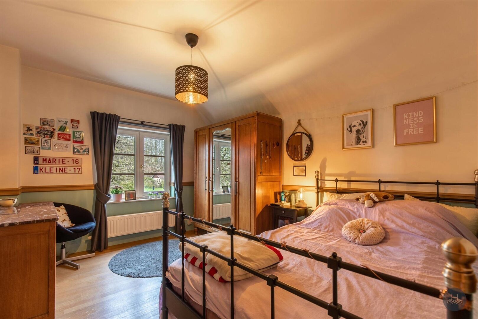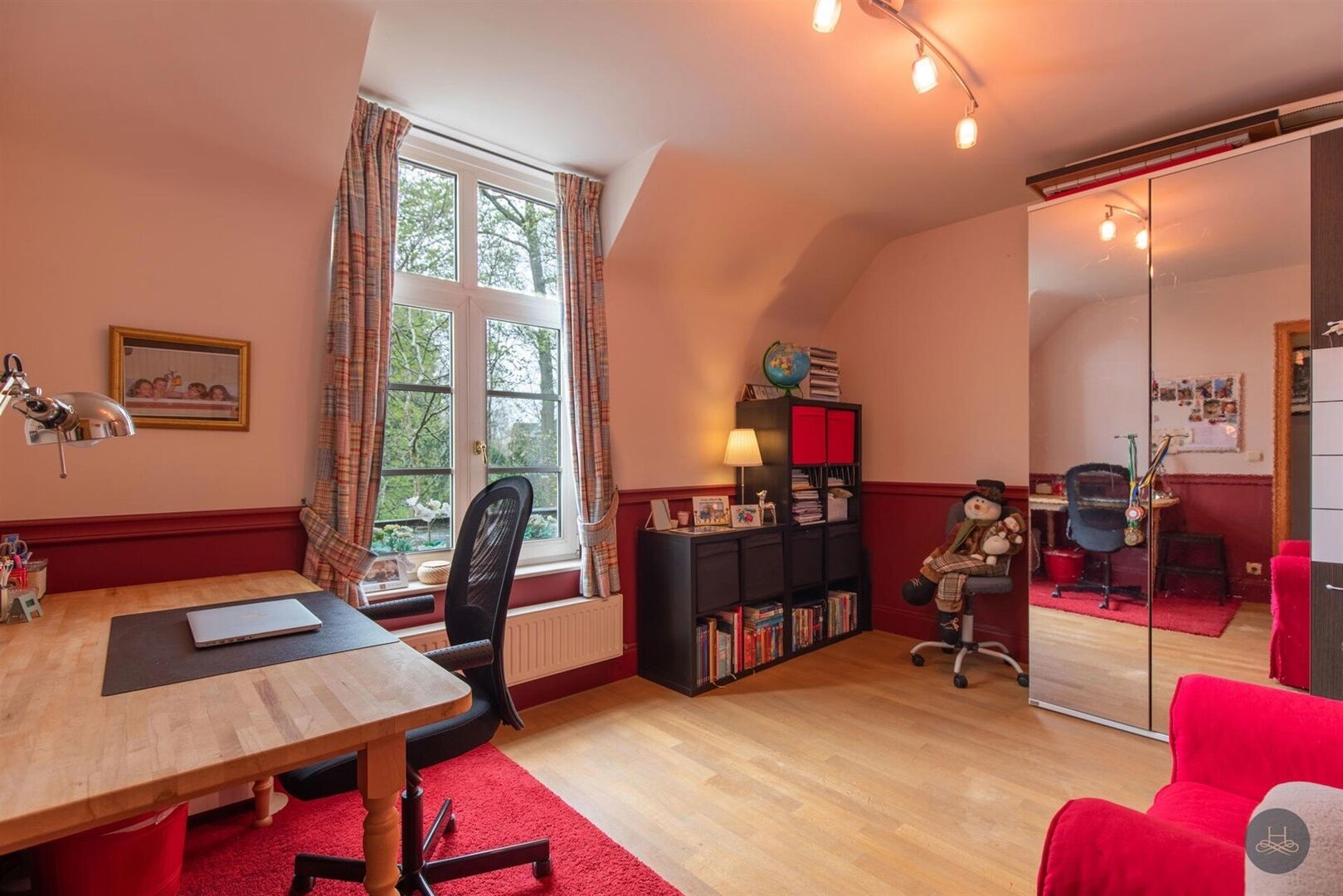 Eerste verdieping: ruime overloop met vide, 4 slaapkamers waarvan 1 met eigen dressing, badkamer met bad, douche en dubbele lavabo, apart toilet.