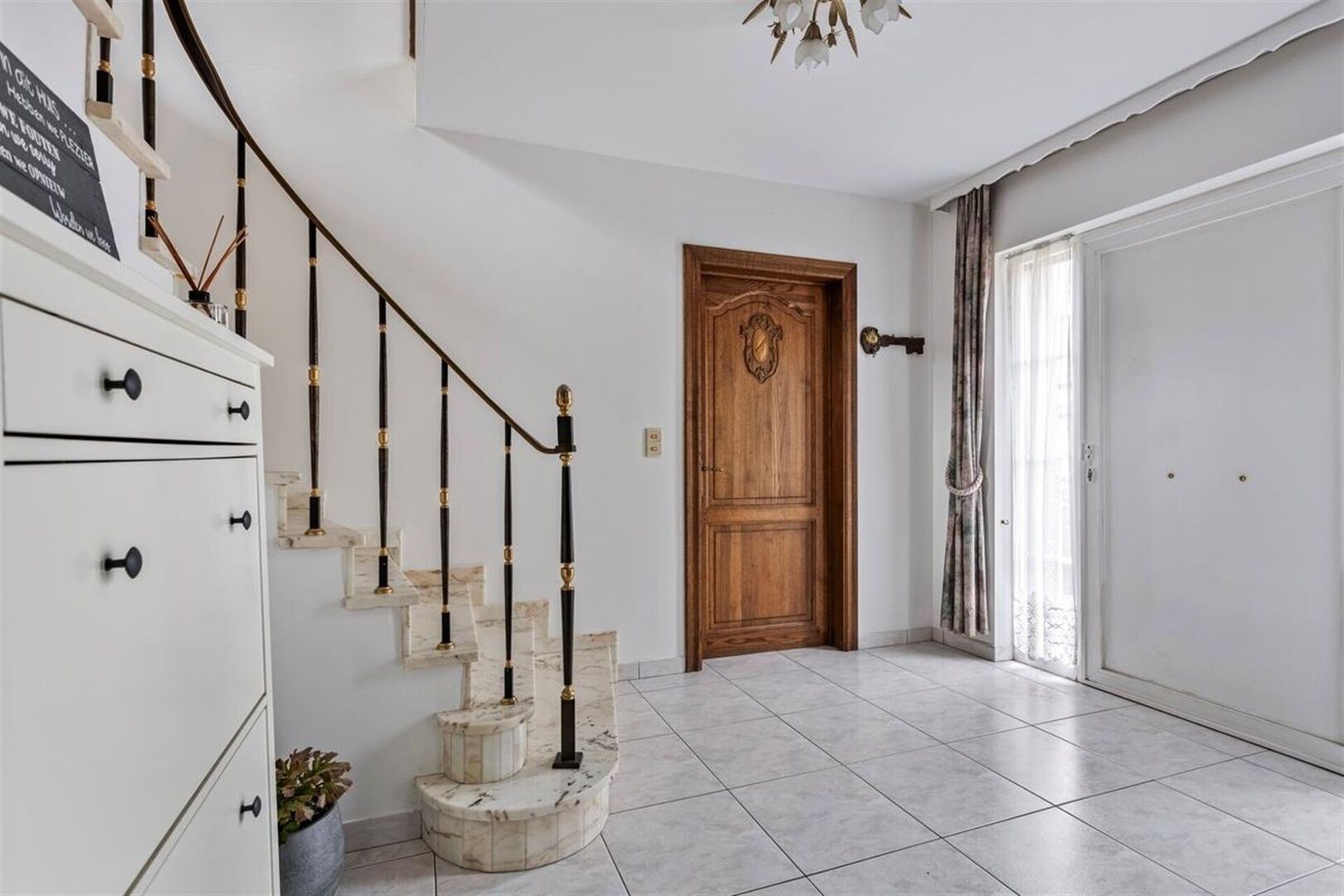 Bij het betreden van de woning word je verwelkomd door een ruime inkomhal met een elegante marmeren trap, die direct een gevoel van stijl en luxe geeft.
