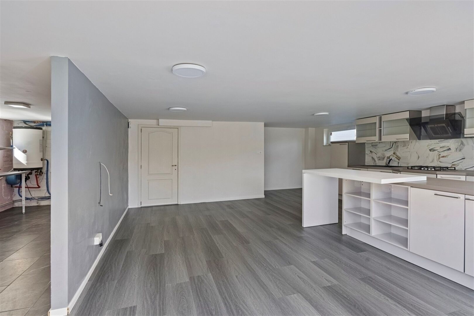Op tuin niveau is de nieuwe leefkeuken (+/- 45 m²) voorzien van een grote eiland, een droom voor iedere hobbykok. Met zijn functionele lay-out is het de plaats voor gasten te ontvangen. De tuin is toegankelijk via twee grote schuiframen.